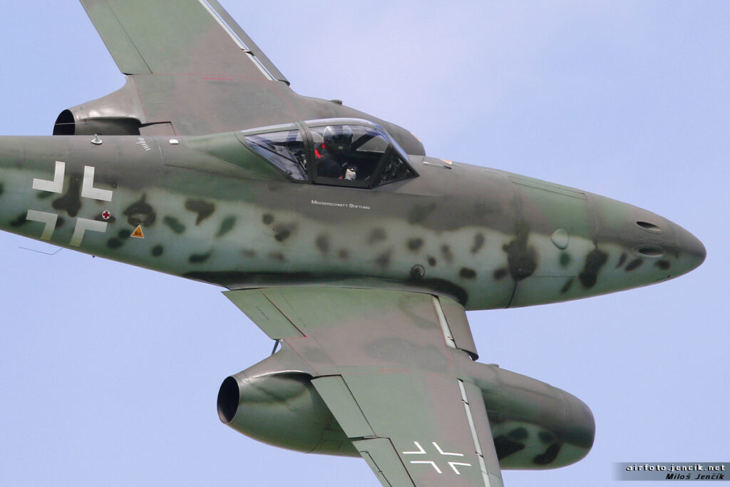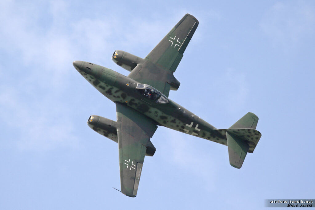 Zajímavostí jistě je, že na výrobě se podílely i některé podniky na území protektorátu. Po skončení války, kdy na našem území zůstala řada poškozených kusů těchto letadel, se podařilo v pražském podniku Avia zkompletovat deset letadel, která se stala prvním proudovým typem zařazeným do výzbroje československého vojenského letectva, dva z nich můžete vidět i v Leteckém muzeu v pražských Kbelích“ dodává Jan Rudzinskyj.